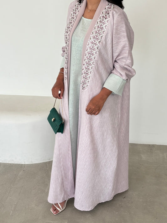 DN147 - LIGHT PURPLE LINEN ABAYA SET
