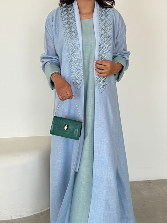 DN151 - BLUE LINEN ABAYA SET