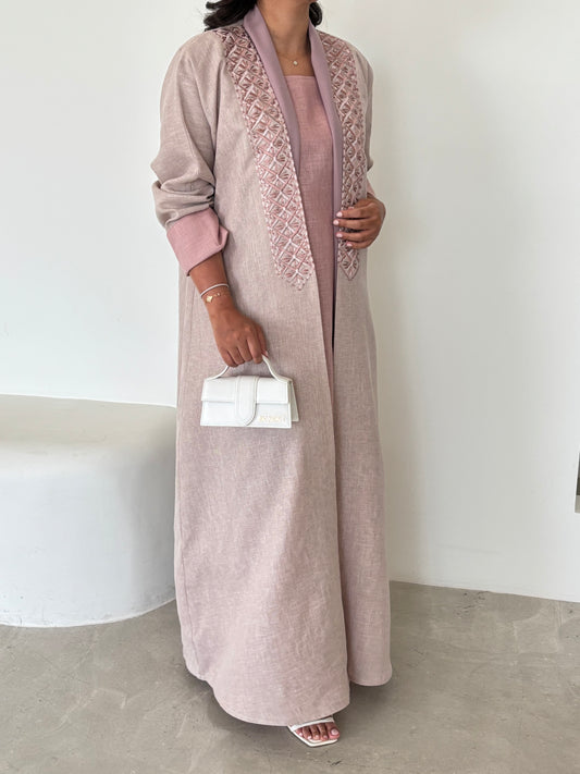 DN146 - PINK LINEN ABAYA SET