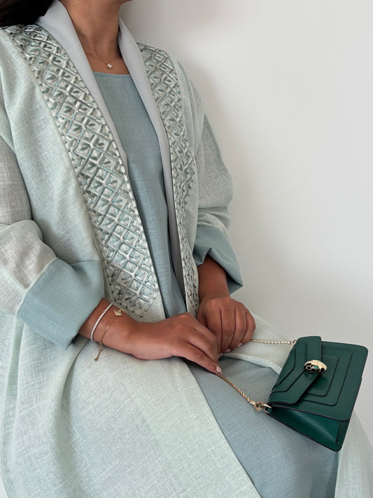DN149 - GREEN LINEN ABAYA SET