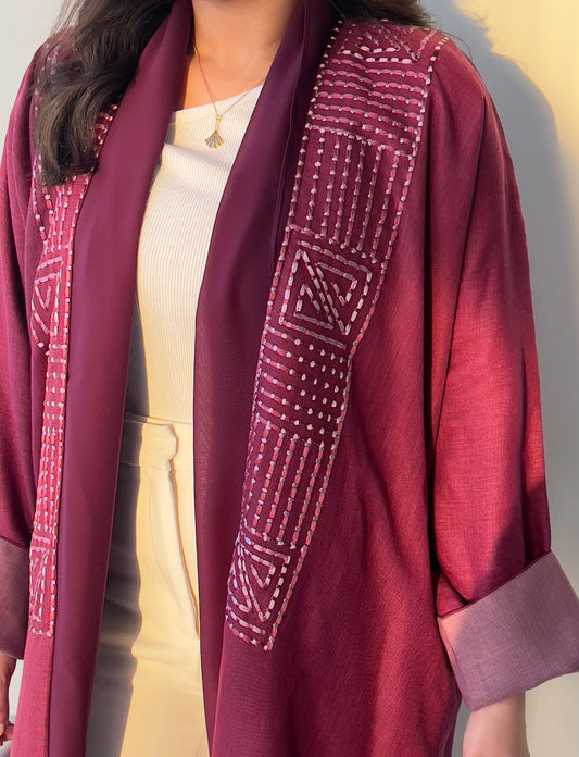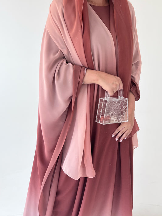 DN030 - PEACH & YELLOW LINEN ABAYA